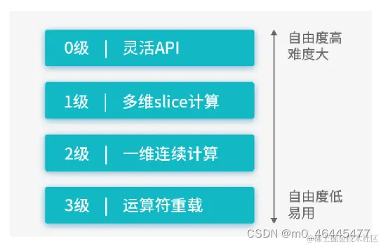 3级接口,运算符重载,支持+, -, *, /, |, &, ^, >, < , >=, <=,!=,==实现2级接口的简化表达 允许用户使用形如:dst = src0 ※ src1,针对整个Tensor进行计算。