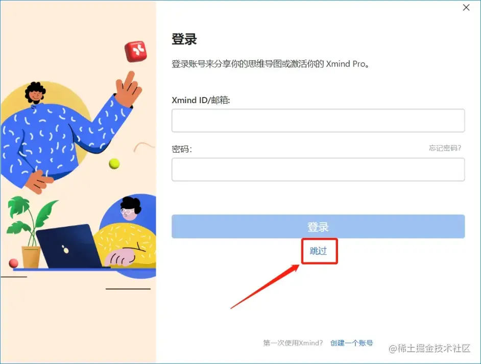 2、安装好后进入软件,选择跳过,不要登陆