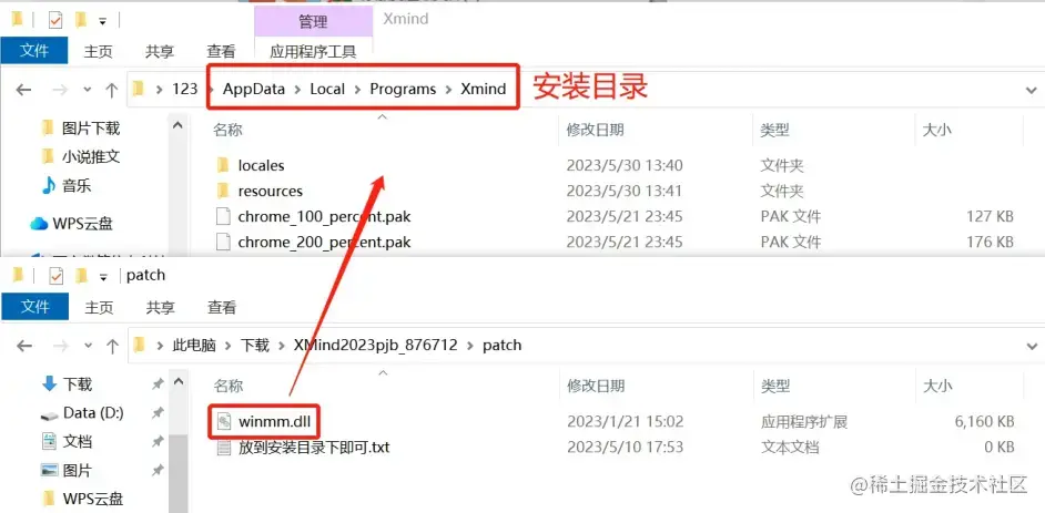 4、就能看到XMind的安装目录,将下载的 winmm.dll放到安装目录下即可