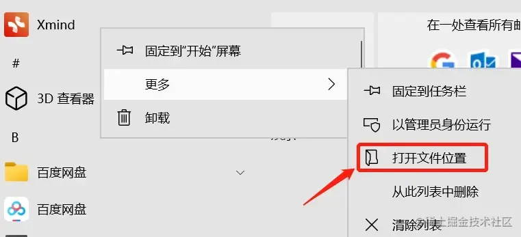 3、右键点击Xmind软件,打开文件位置