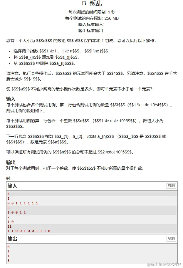 序列只由0或1组成,我们可以进行的操作是,删除一个数加到另一个数上面去。