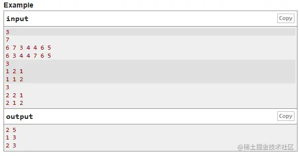 题意: 第二个数组是由对第一数组的一个子序列排序后得到的,要求的是该子序列的最长是哪一段。