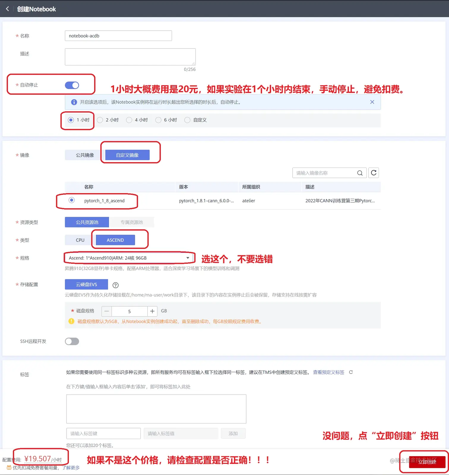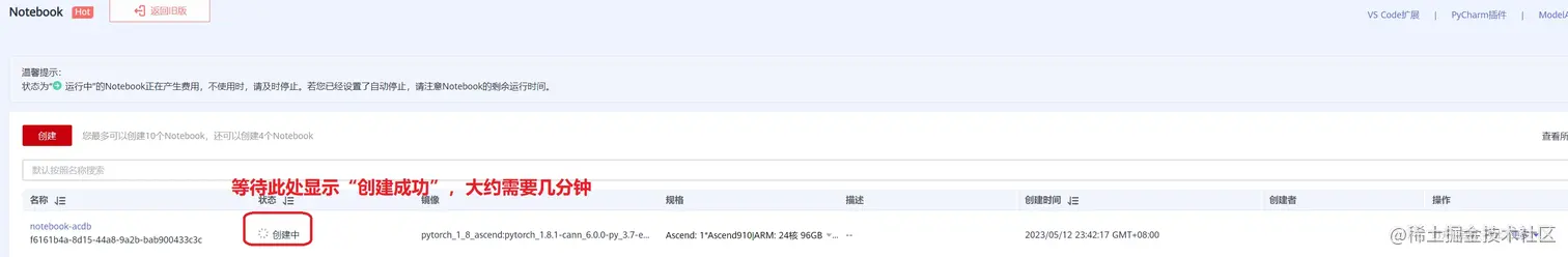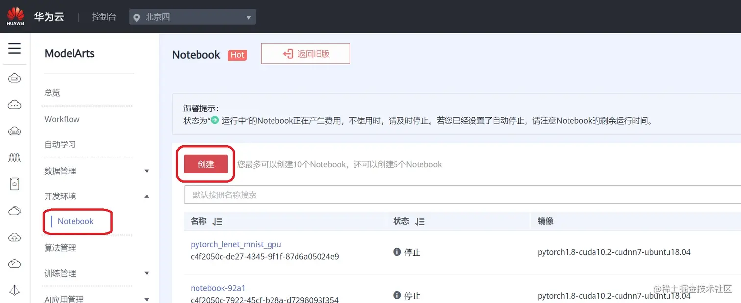 选择“开发环境”/“Notebook”,然后点击“创建”。
