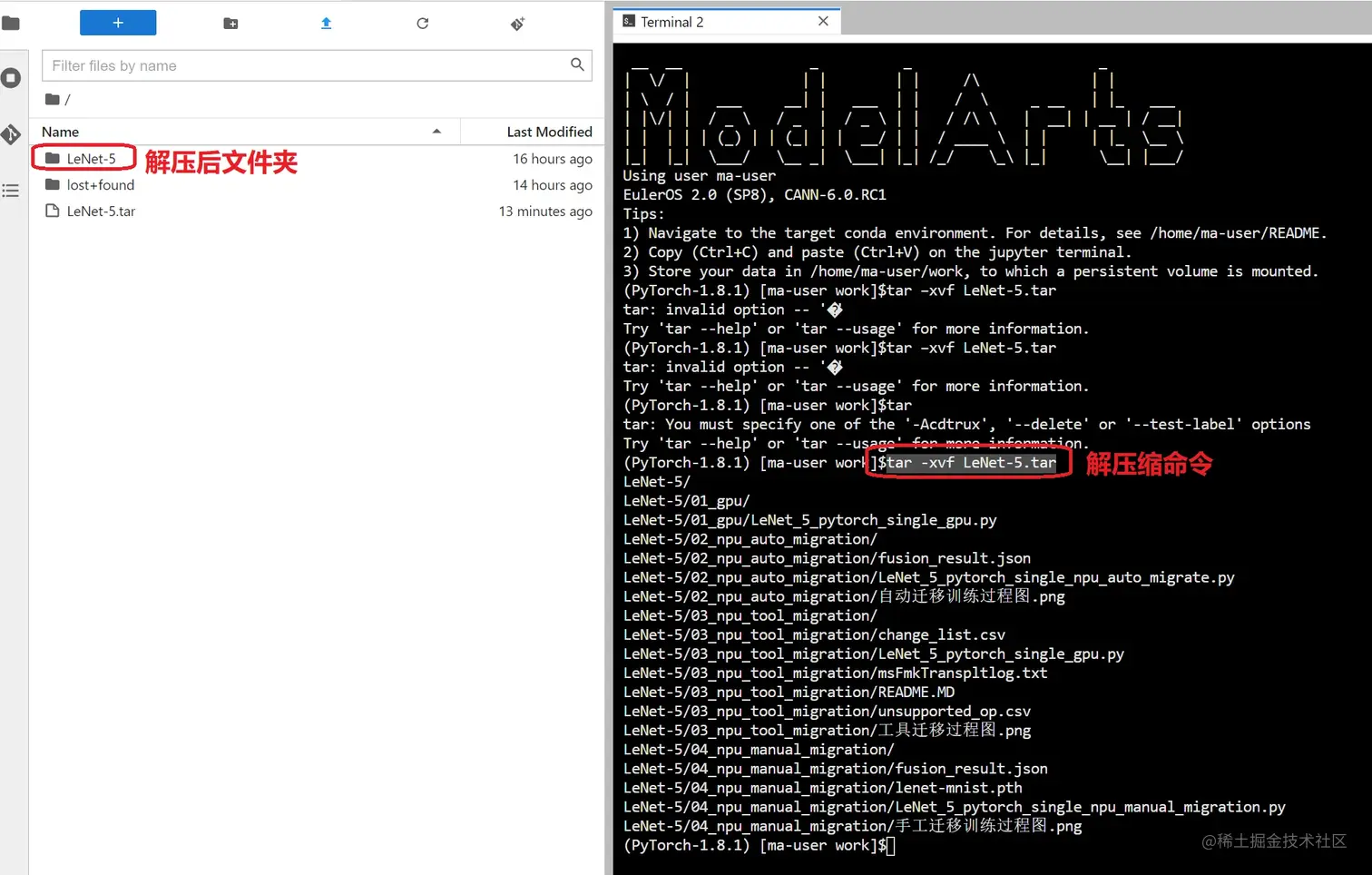 使用tar -xvf LeNet-5.tar,解压缩得到LeNet-5文件夹