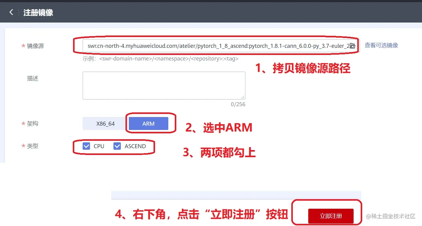 弹出的“镜像注册”页面如下图所示,在“镜像源”填入: