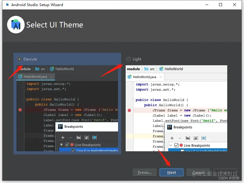 1.10 选择AndroidStudio的主题颜色,根据个人喜好设置。
