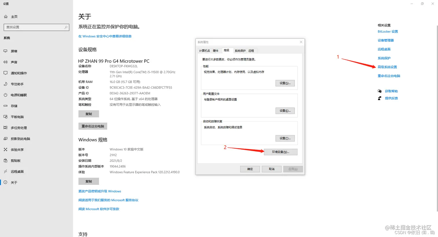 2.1 右击我的电脑 ——》属性——》高级系统设置——》环境变量。