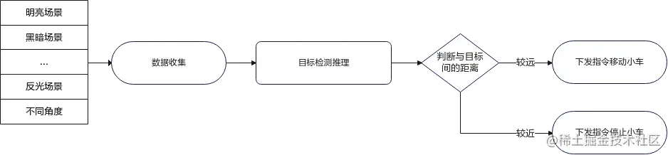1、通过摄像头收集不同场景下需要跟随的目标,识别前方目标并跟随目标行驶。