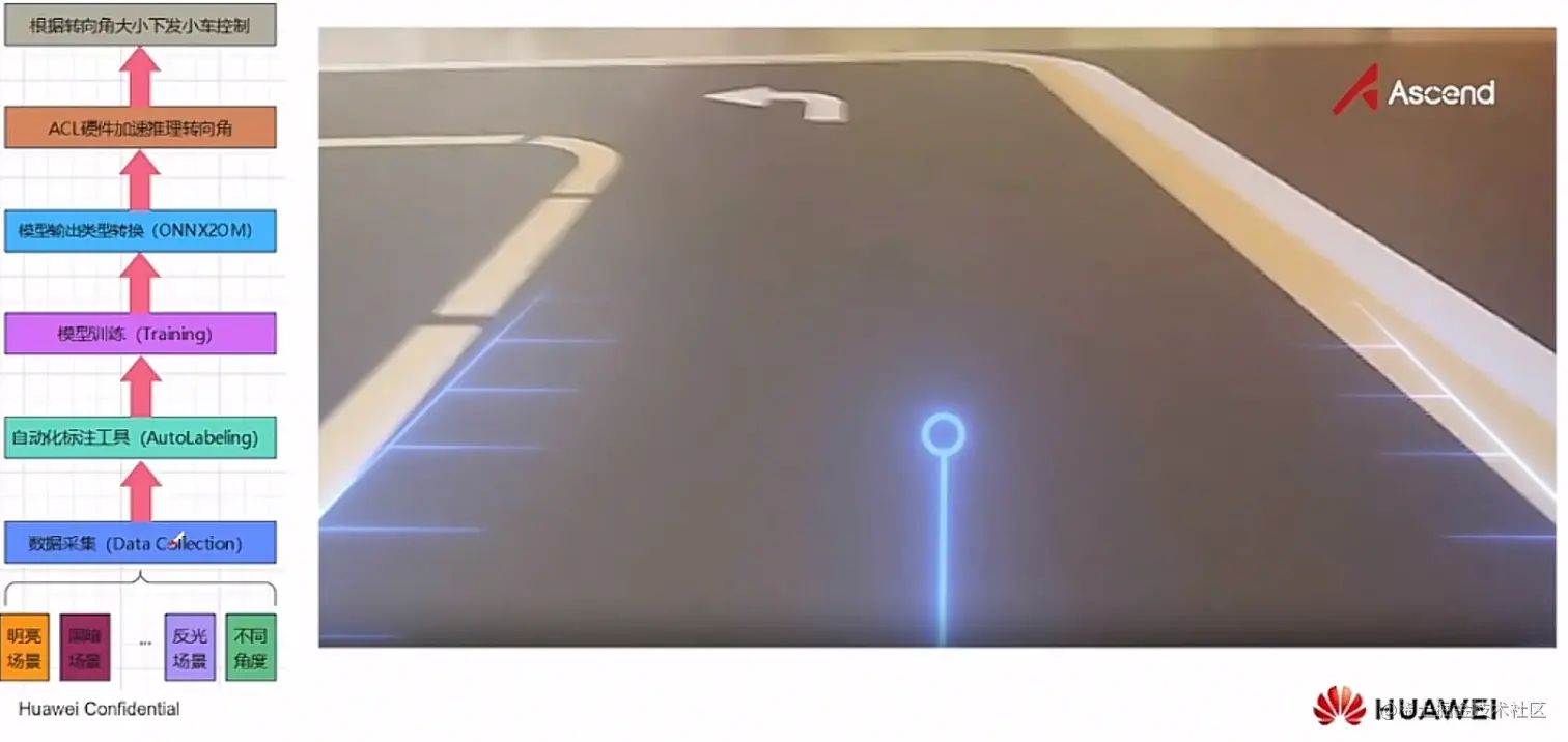 基于Atlas 200I DK A2开发者套件的智能小车,是使用开发者套件的内置神经网络模型,借助昇腾芯片,实现自动驾驶、自动泊车、目标跟踪等功能。