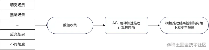 1、通过摄像头收集不同场景下的路况信息数据,判断当前位置并识别转弯标识。