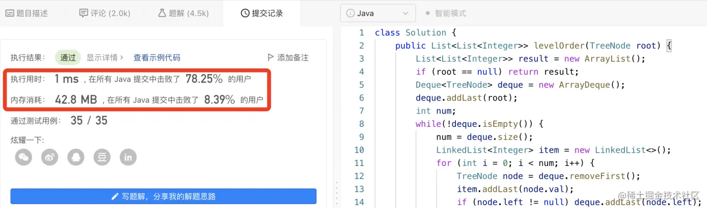 根据题目要求,我们要实现二叉树的从上到下,从左向右的遍历输出。那么每一层我们将其保存到一个List中,然后所有二叉树节点都遍历完毕后,就输出List<List<Integer>> result即可。