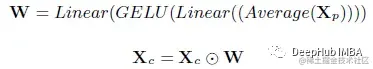 然后将输出的补丁标记平均为权重向量 W。在squeeze-excitation操作之后,输出权重向量将与类标记通道相乘。然后重新校准的类令牌将与输出补丁令牌以恢复令牌序列。