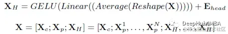 Xc、Xp 分别表示类标记和补丁标记。类标记在投影层之前从序列中分离为 Xc。剩余的令牌 Xp 则通过一个内部有残差连接的深度集成多层感知器。