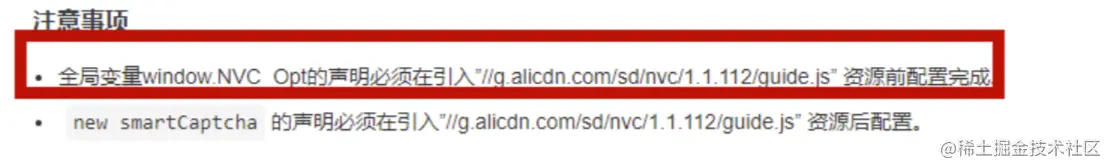 处理js代码是比较重用的,因为这里有个比较重要的点就是window.NVC_Opt的声明必须在引入guide.js之前,否则在guide.js里面会报错 NVC_Opt is not defined ,而且在官网中也有说明了这一点的, 所以要想实现功能就需要动态去引入guide.js文件了。