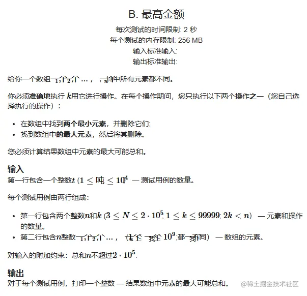 因为只有两种操作,即删除最小的两个数或者删除最大的一个数,这样的题目我们很容易想到先进行一个sort排序,那么删除哪个数也就是维护两端端点就行了。