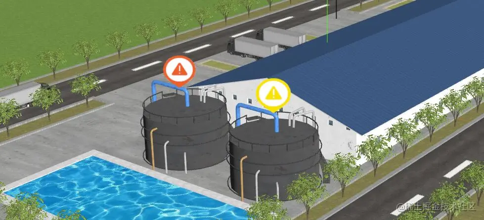实际开发的时候,可以使用精灵模型Sprite + 颜色贴图作为标签,标注三维场景。