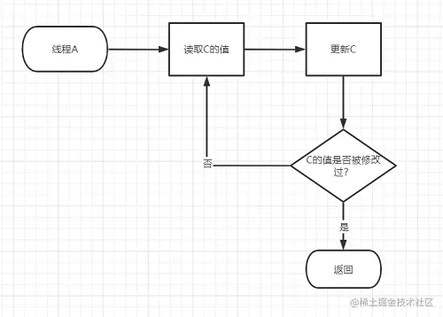 CAS算是比较高效的并发控制手段,不会阻塞其他线程。但是,这样的更新方式是存在问题的,看流程就知道了,如果C的结果一直跟预期的结果不一样的话,线程A就会一直不断的循环重试,重试次数太多的话对CPU也是一笔不小的开销。