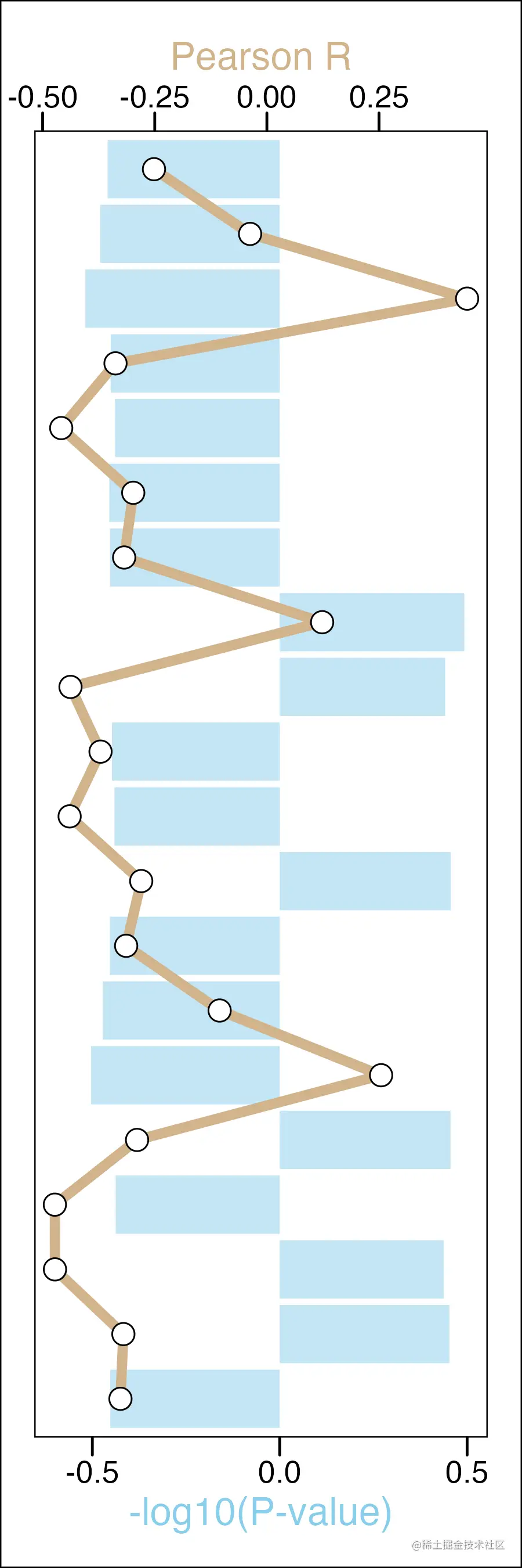 在ggplot2图形映射中(geom_line、geom_point),都把P列的范围放缩到x_min_max这个范围,但是在坐标轴上标出真实的值范围p_min_max。