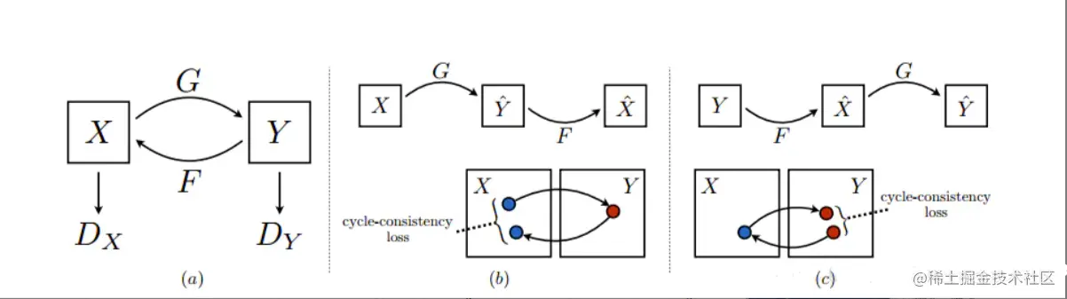 CycleGAN本质上是两个镜像对称的GAN,构成了一个环形网络。两个GAN共享两个生成器,并各自带一个判别器,即共有两个判别器和两个生成器。一个单向GAN两个loss,两个即共四个loss。
