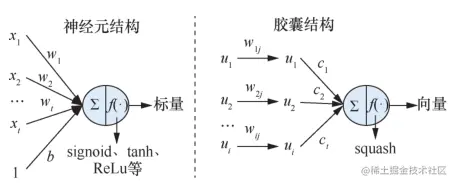 CapsuleGAN 使用胶囊网络作为判别器的框架(如图31所示)。胶囊网络可以用于替代神经元,将节点输出由一个值转变为一个向量,神经元用于检测某个特定模式,而胶囊网络可以检测某个种类的模式,以此提高判别器的泛化能力,从而提高生成样本质量。