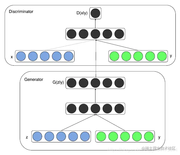 在训练一个GAN时,只把0这个数字的图片作为真实样本放入GAN训练,GAN能生成一个数字的图片(比如0这个数字的图片),而要想生成0-9所有的对应图片,则需要训练10个不同的GAN,但是加入条件,也就是每个图片样本对应的标签的时候,我们就可以把10个数字的样本和对应的标签都同时放到这个网络中,就可以使用一个GAN网络生成0-9这十个数字的图片了