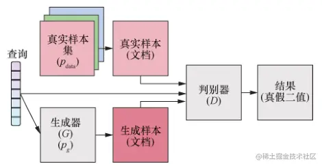 IRGAN 利用 GAN 将 IR(information re-trieval)领域中的生成式检索模型与判别式检索模型相结合,对于生成器采用基于策略梯度的强化学习来训练,从而在典型的信息检索任务中取得较好的表现。IRGAN 模型如图33所示。