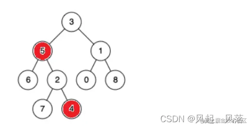 节点5与节点4的最近公共祖先是节点5 节点5与节点4都属于根的左子树 若两个节点都在根的左子树,则递归根的左子树的节点为根,当这个根为两个节点其中一个时,则这个节点就为公共祖先