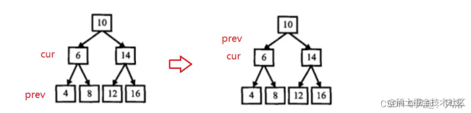 TreeNode*prev=nullptr;//记录cur节点的上一个