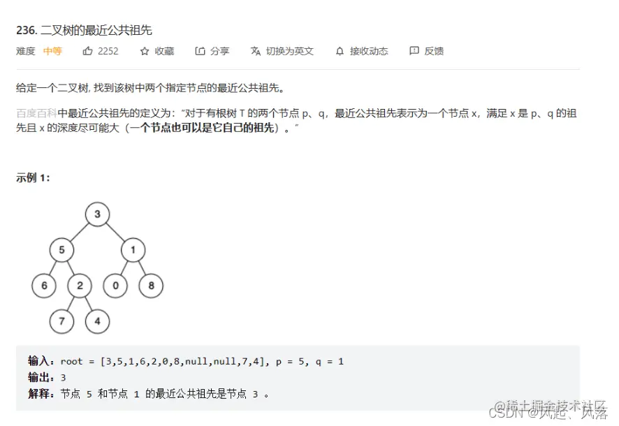 二叉树的最近公共祖先OJ连接