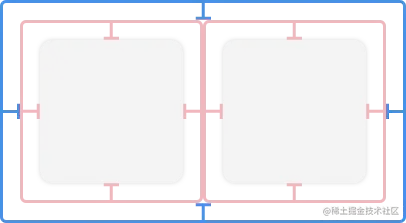 灰色区域是 Item,红色框是 Item 的边界,蓝色框是 Group 的边界,蓝色的上下左右边距就是设置的 contentInsets。 - 设置语法