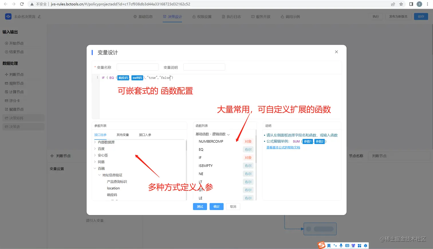 总的来说,将数据加工成变量并使用函数式编程的方式在规则引擎中具有重要的价值。它能够提供丰富的数据基础,使规则引擎能够更好地进行规则判断和操作。同时,函数式编程的特性可以带来可组合性、可扩展性、可测试性和可并行性,使规则引擎的开发更加灵活、可维护和高效。JVS-rules规则引擎100%技术源码可开放,在功能强大的同时具备极其友好的配置界面,值得体验jvs-rules.bctools.cn,也欢迎一起交流。