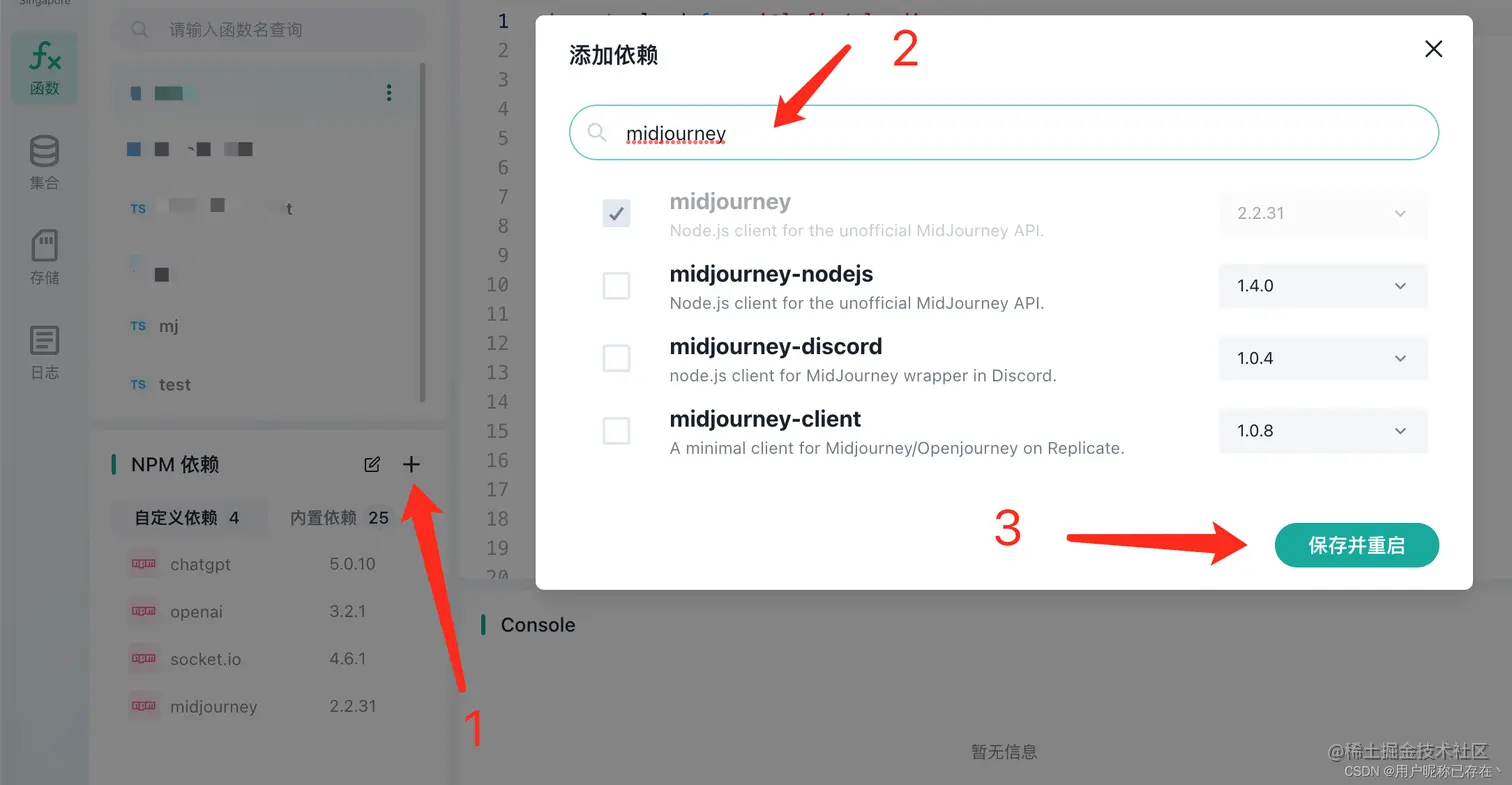 - 先在左下角NPM依赖添加依赖