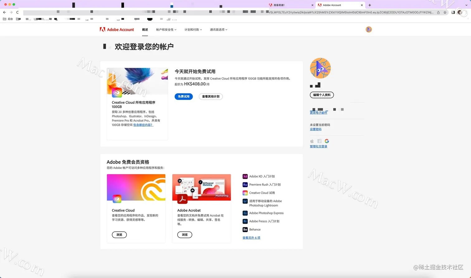 注册成功后,用谷歌邮箱重新登陆Adobe Creative Cloud(AntiCC)账户