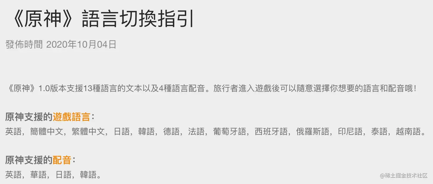 3D二游领军人物【原神】拥有过13种游戏语言以及4种游戏配音。