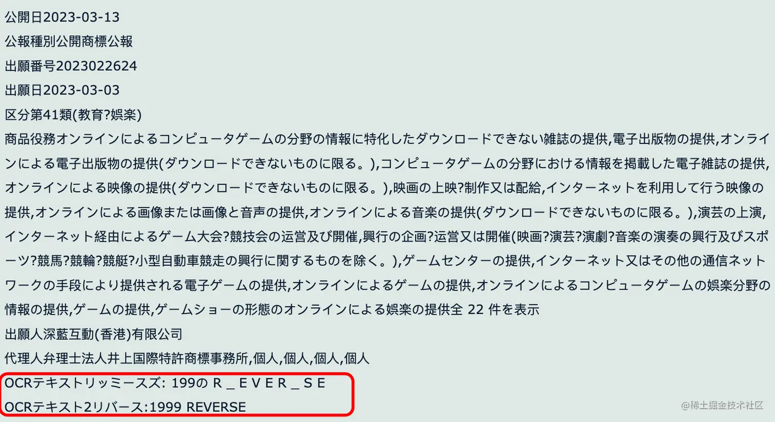 事实上,在3月23日版号公布前笔者以为【重返未来:1999】会如【白夜极光】一样,走先出海后回国的路。一方面是二测时【重返未来:1999】仍未实装国语配音,担心其版号也会因此延迟发放。一方面是【重返未来:1999】申请的两个日本商标于3月13日正式发放。