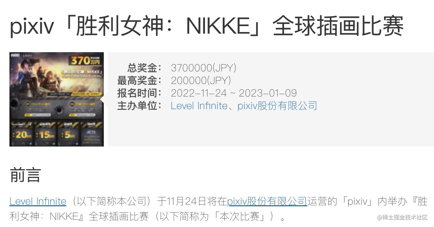 日本同人网站Pixiv与【NIKKE】合作举行同人创作比赛