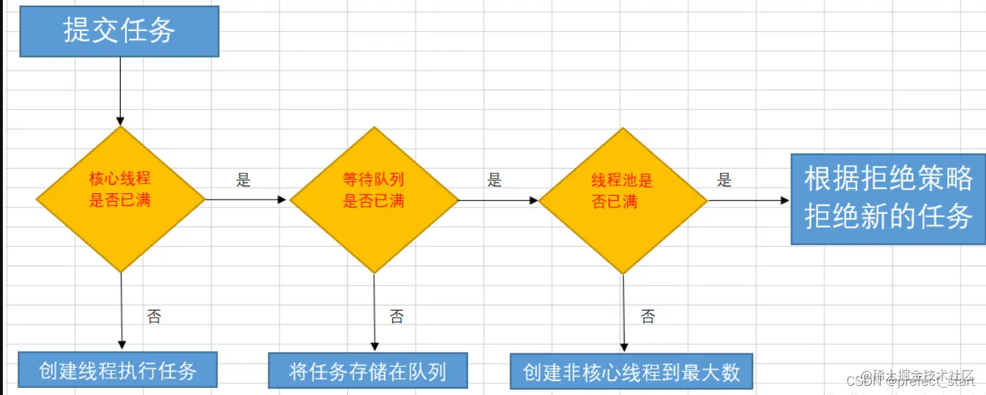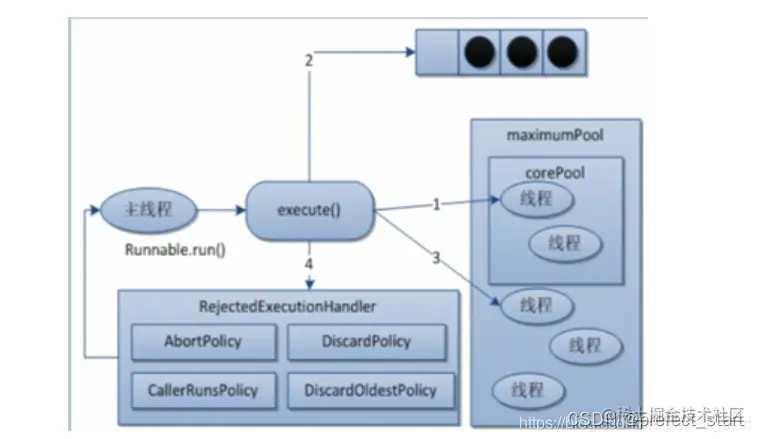 - 在创建了线程池后,等待提交过来的任务请求。当调用execute()方法添加一个请求任务时,线程池会做如下判断: