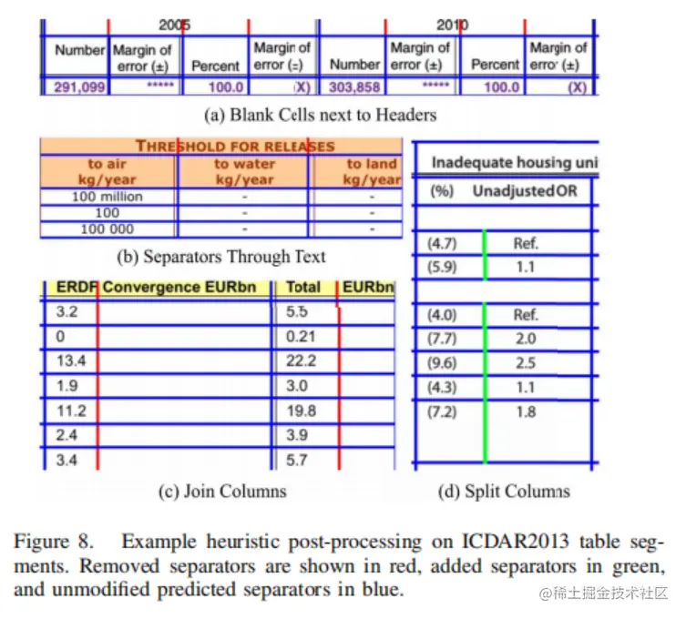 C Tensmeyer提出了SPLERGE(Split and Merge),另一种使用扩展卷积的方法。他们的策略需要使用两种不同的深度学习模型,第一个模型建立了表的网格状布局,第二个模型决定了是否可能在许多行或列上进行进一步的单元格跨度。