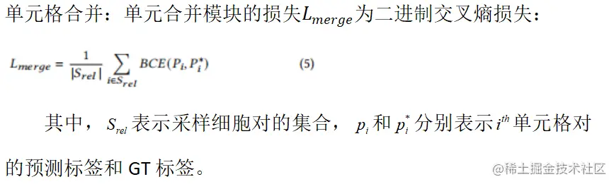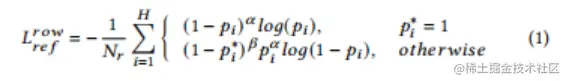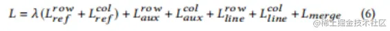 对于分割模块,作者以行分隔符预测为例,并将相应的损失项表示为L_^{row}。同样,作者也可以计算列分隔符预测的损失,记为L_^{col}。参考点检测:采用focal loss的一种变体来训练行参考点检测模块: