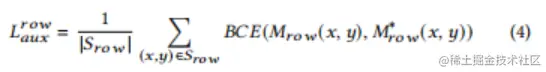 其中S_{row}表示M_{row}的采样像素集,M_{{row}^{(x,y)}}和M_{{row}^{(x,y)}}^*分别表示S_{row}像素(x,y)的预测和地面真实标签。仅当M_{{row}^{(x,y)}}^*的像素位于行分隔符内时,它才为1,否则为0。