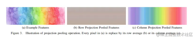 然后,RPN通过1x1的卷积操作,然后进行投影池化(图3),计算行特征(图2的顶部分支)。投影池化的灵感来自于经典布局分析中用于寻找空白间隙的投影轮廓操作。作者使用投影池化保持输入的空间大小(而不是像投影剖面图中那样折叠到一维),并简单地用它的行平均值替换输入中的每个值。具体来说,