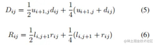 D_{ij}是单元格(i,j)与单元格(i+1,j)合并的概率,R_{ij}是单元格(i,j)和(i,j+1)合并的概率。D的大小不是M×N,因为在任何一列中只有M−1对上下合并。