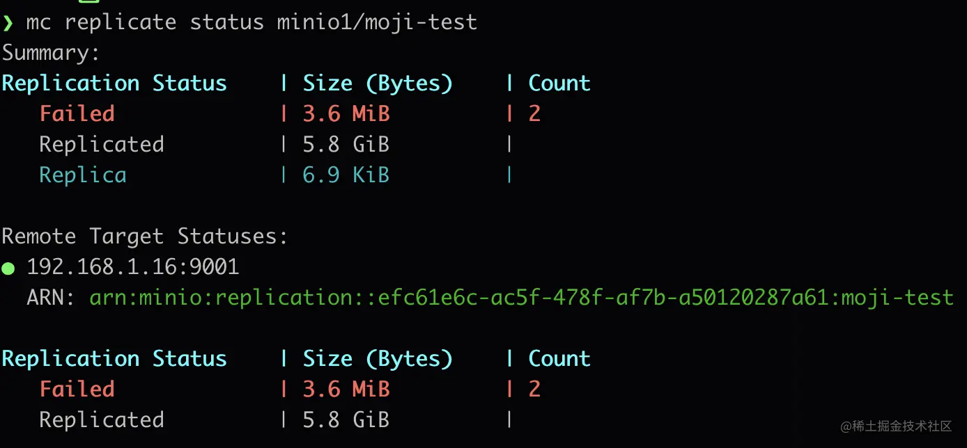 通过命令行工具 MinIO Clinet 查看 Replication 状态、待复制 Object 列表