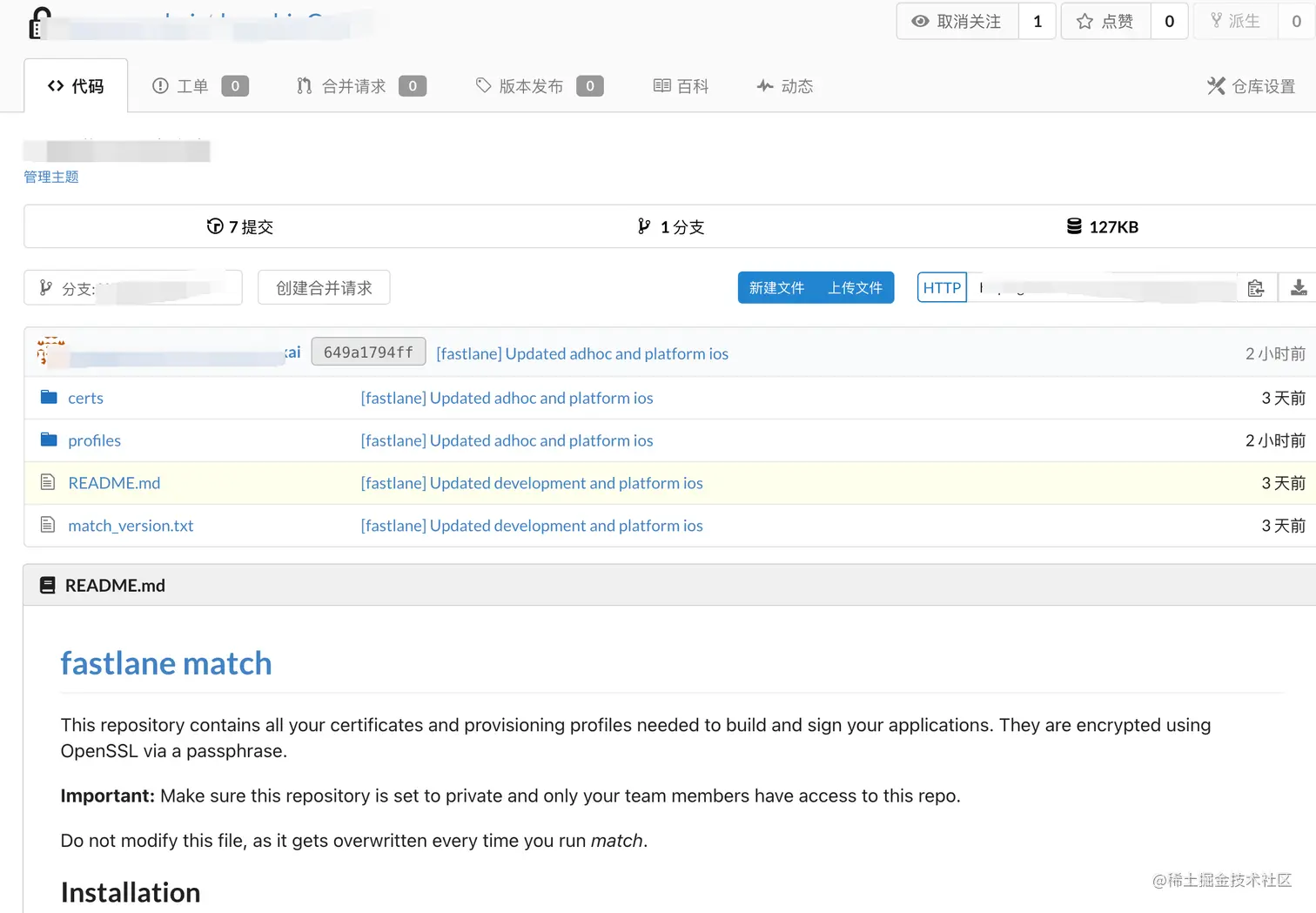 使用fastlane match 生成的相关证书文件内部进行了加密,所以无法从git仓库中直接下载使用,需要参照fastlane官方文档进行解密才可以使用。或者使用正常match命令获取证书,但这要求新的开发人员的机器上有fastlane环境,不是非常方便。
