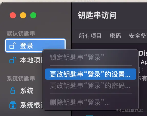 钥匙串设置需要关闭休眠,不然可能造成其他不可控的问题
