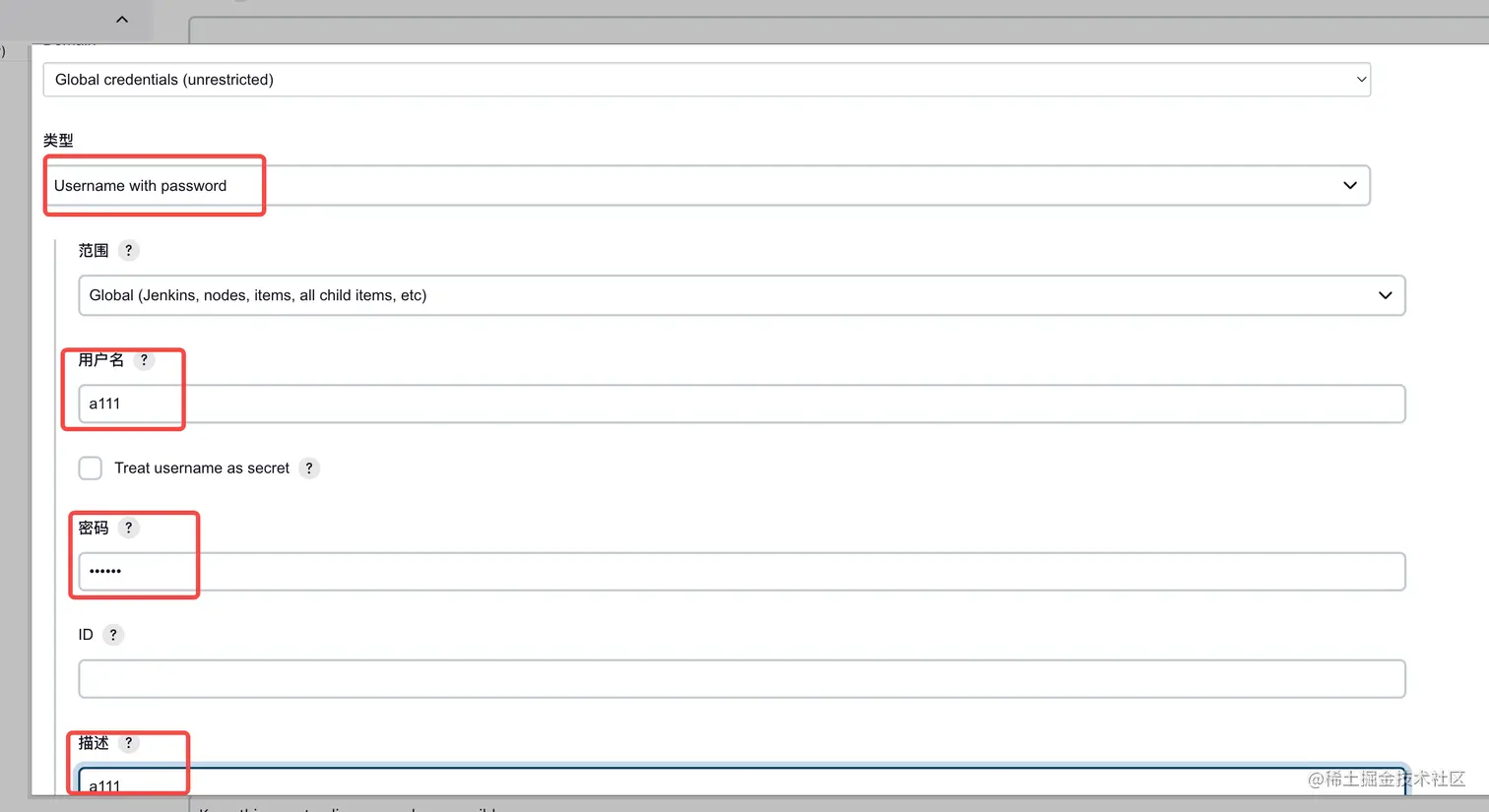 jenkins中创建登陆账号密码, 点击添加,将本机登陆账号和密码添加
