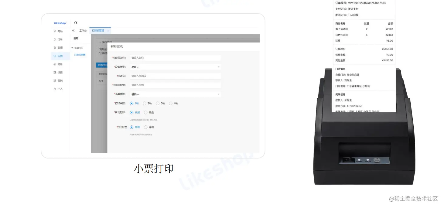 小票打印—接入易联云等第三方硬件设备,实现自动打印小票,方便门店管理订单