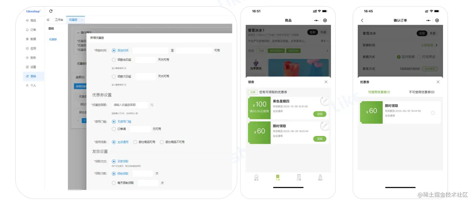 营销功能-商家优惠券—由商家设置的优惠券,用户可在点餐的门店内购买商品,抵减优惠券对应金额