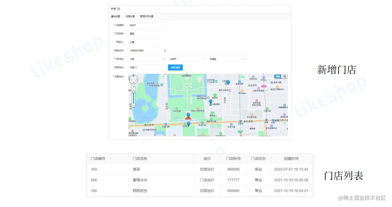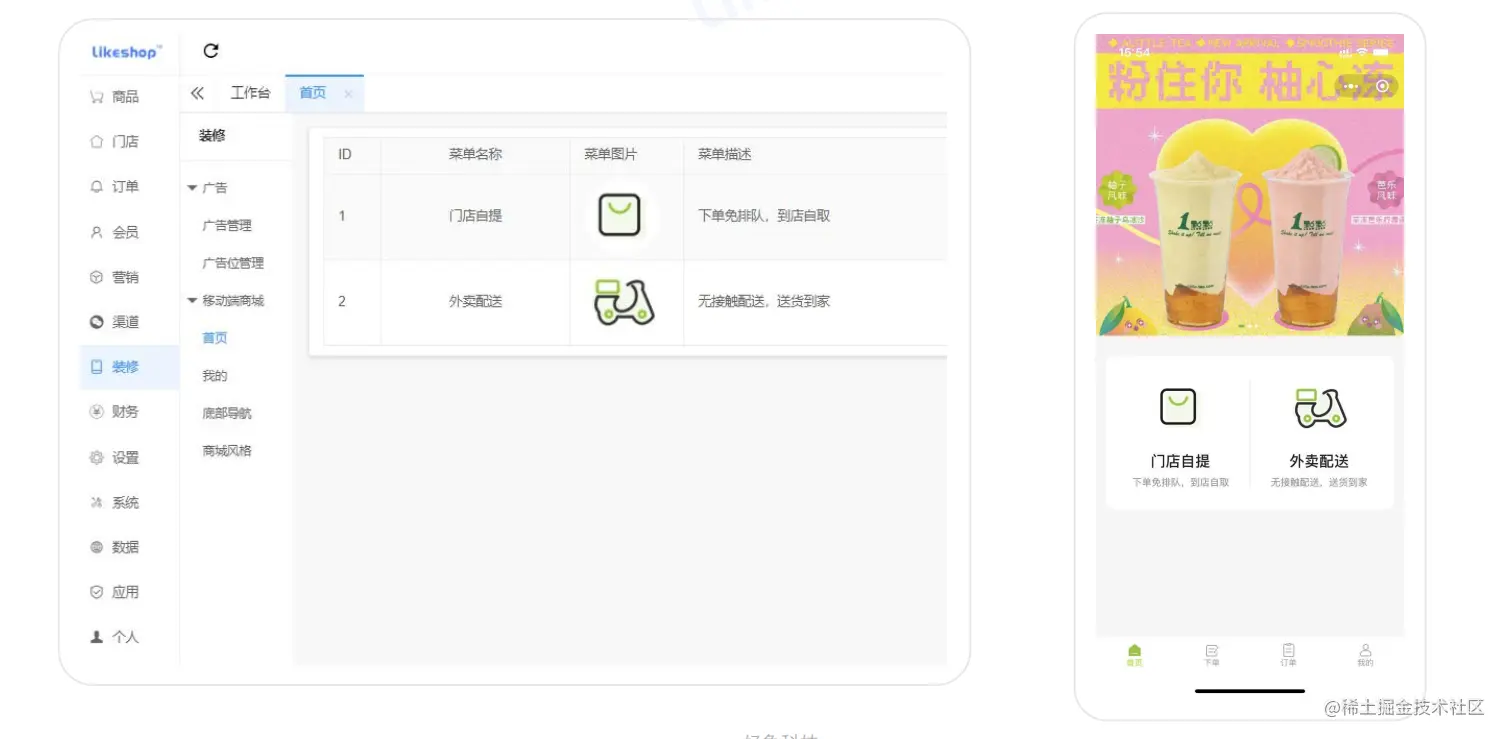 门店后台-单独的门店后台—门店为独立的系统模块,平台可以查看门店的运营状况、订单、商品、权限菜单等