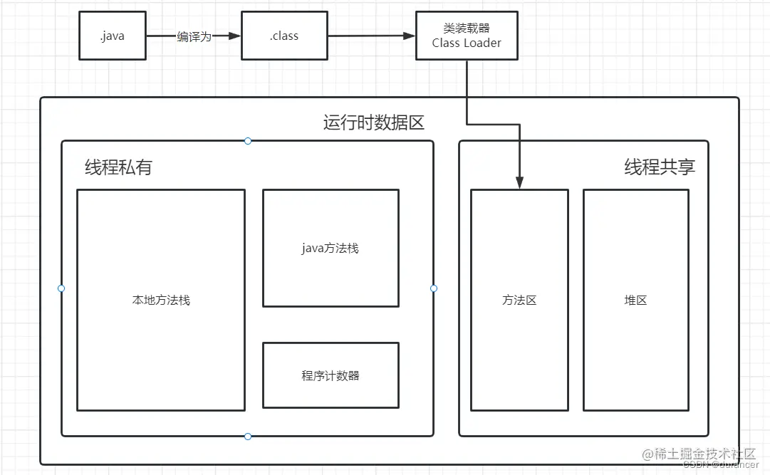 Java 是一门编译类语言,所编写的 .java文件会被编译成 .class文件。那么在我们的java程序执行时,运行时数据区的方法区就会获取到对应的类信息: